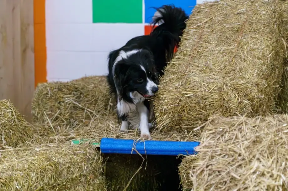 Barn Hunt is a fast‑paced, confidence‑building dog sport where dogs use their natural scenting instincts to locate safely‑contained gerbils hidden in a course made of straw bales.